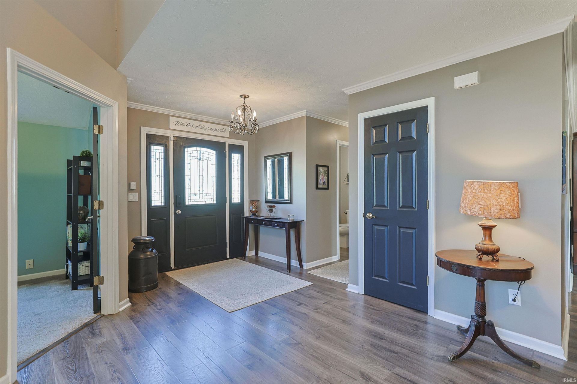Your own personal resort...in Granger! Cool off in the heated, saltwater in-ground pool during the summer, and warm up by the crackling wood fireplace in the fall & winter! Cook up a sumptuous meal in the generously-sized kitchen-you deserve it! Exercise in the spacious basement, then relax in the soaking tub! Quiet and peaceful Woodfield Downs almost feels like you're in the country, but you're close to everything! Located 5 minutes from the Grape Rd./Main St. corridor, and 14 minutes from Notre Dame & St. Mary's. A large room in the basement is currently being used as a fifth bedroom. BRAND NEW washer, dryer, refrigerator, oven, and dishwasher! A newer septic field (2018), roof (2017), water softener (2023), and pool cover (2023) add peace of mind, as does a fence around the pool. Laundry hookups available in the lower AND main levels!